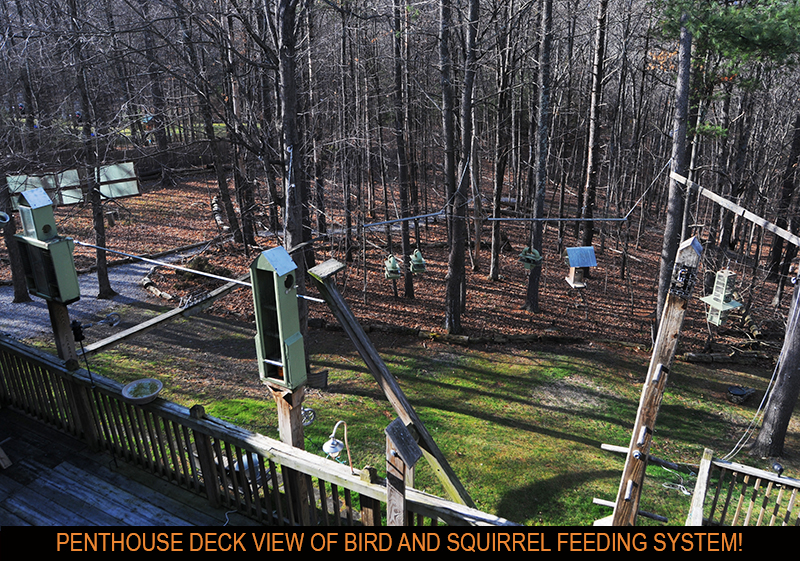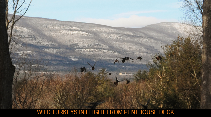 For birders it is really a paradise with feeders in full view from any of the Penthouse decks or windows. There are also turkeys, plenty of deer always, and the fattest squirrels in Ulster County! There are dozens of chipmunks and you might also see the ground hog... a skunk... or just about anything wild that lives in the area. Bring your camera and your binoculars.